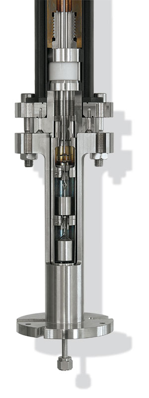 A balança de suspensão magnética patenteada pela Rubotherm permite a medição precisa dos pesos das amostras em vasos.