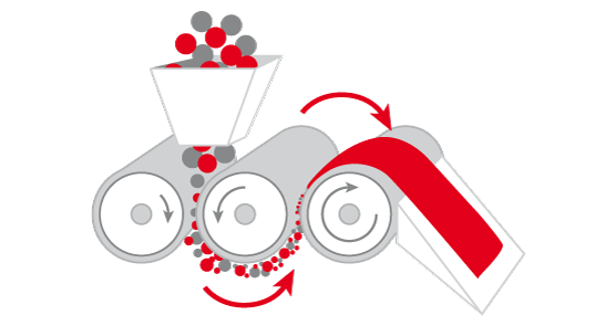 - Em combinação com controle digital da velocidade dos rolos, permite processar materiais com propriedades reológicas e viscosidades muito diferentes
